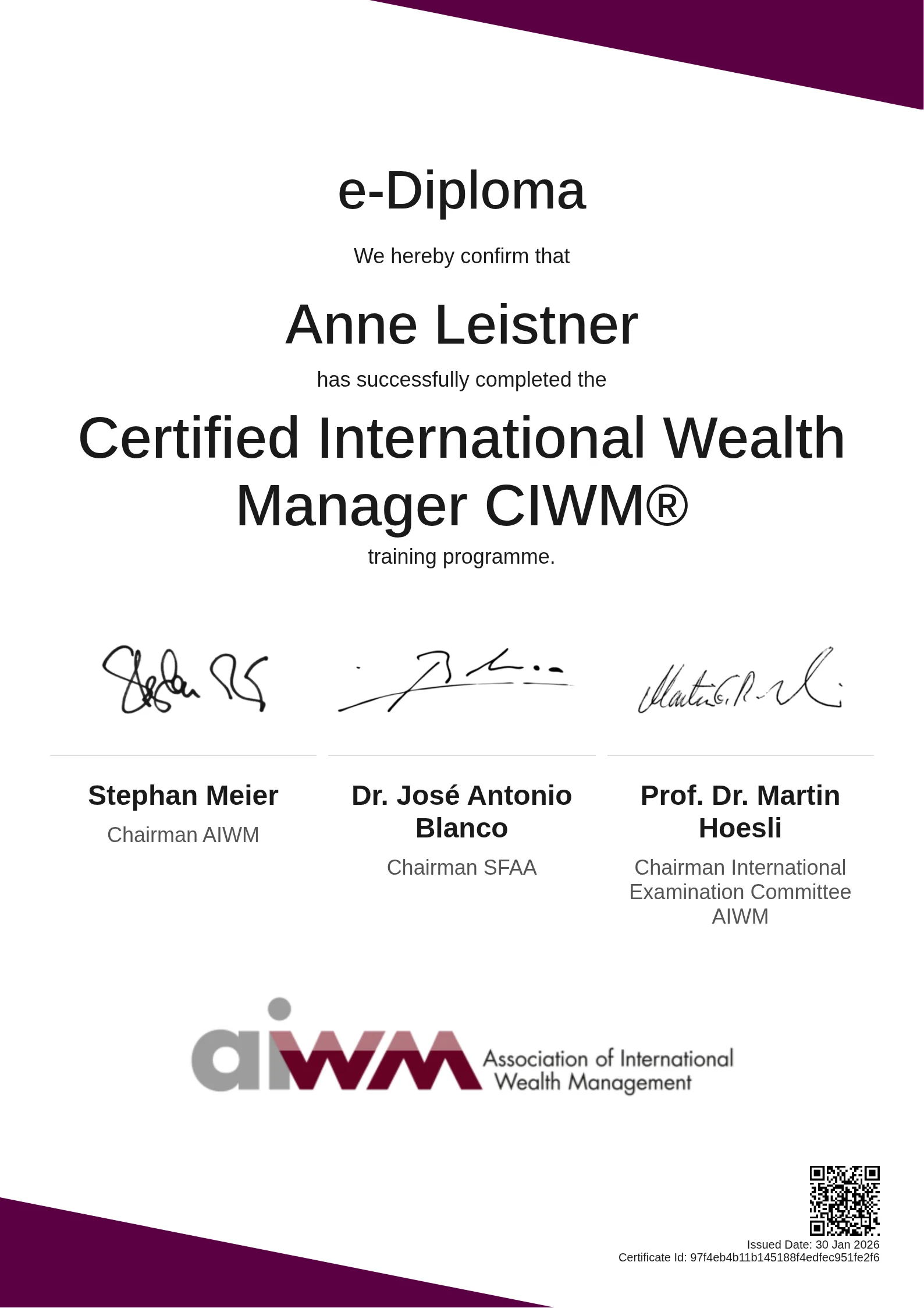 Anne Leistner | Certified International Wealth Manager CIWM®
